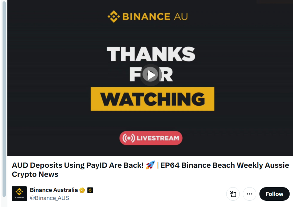 The exchange plans to share more details about its local roadmap at the Brisbane event. Poblocki and host Liam will discuss upcoming developments with the Australian Binance community.