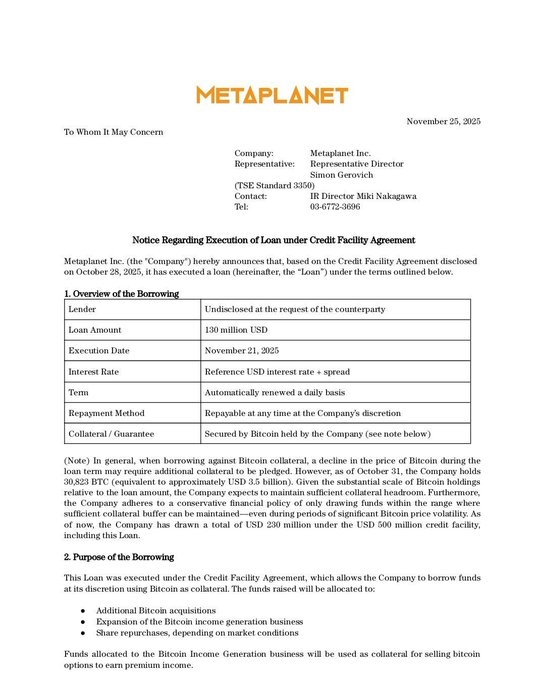 Globally, corporate accumulation continues as MetaPlanet secured a $130 million raise backed by Bitcoin collateral to further expand its treasury holdings.