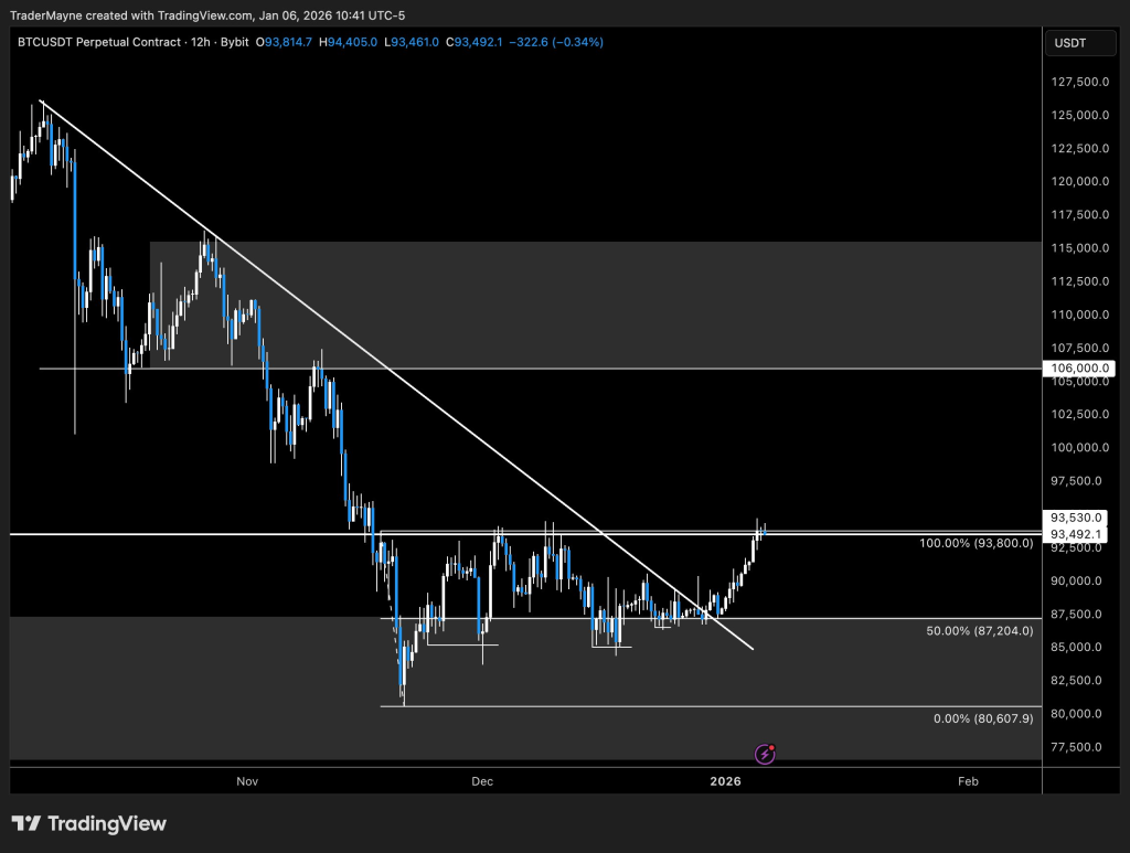 Trader Mayne highlighted that Bitcoin is currently trading at the top of its recent range. He identified the 2025 yearly open as a critical level, stating a sustained move above would likely open the door to $105,000.