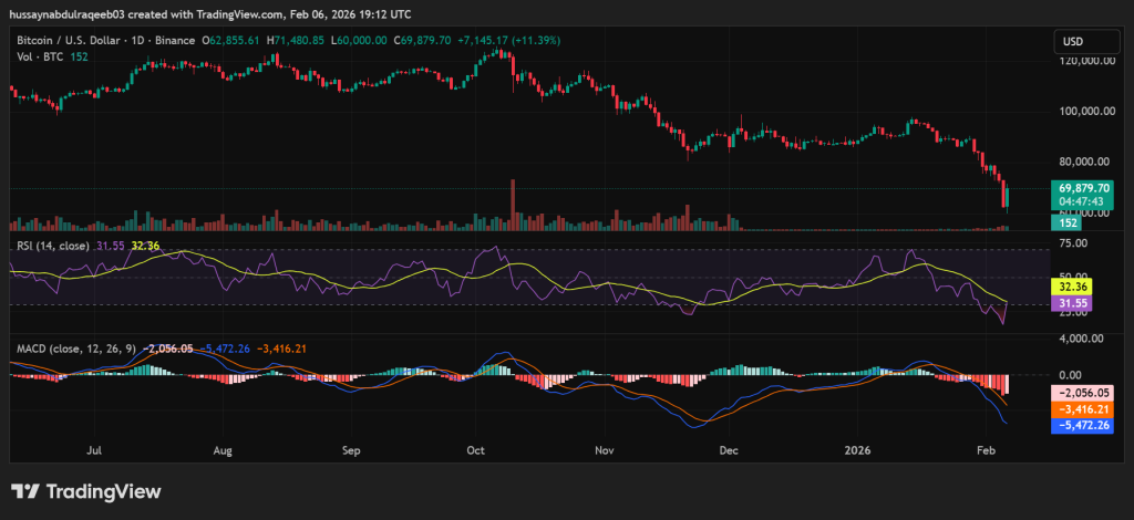 Bitcoin surged past $71,000 on February 6 after a brutal week-long selloff that wiped out over $250 billion in market capitalization. The flagship cryptocurrency climbed 6.56% in 24 hours, trading at $71,076.11. This recovery added approximately $10,000 from recent lows near $65,000.