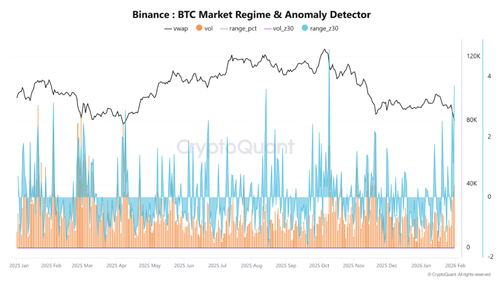 Data from Binance reveals Bitcoin’s volume-weighted average price reached approximately $79,870. Daily trading volume hit 39,500 BTC, a relatively high figure compared with recent periods of stability.