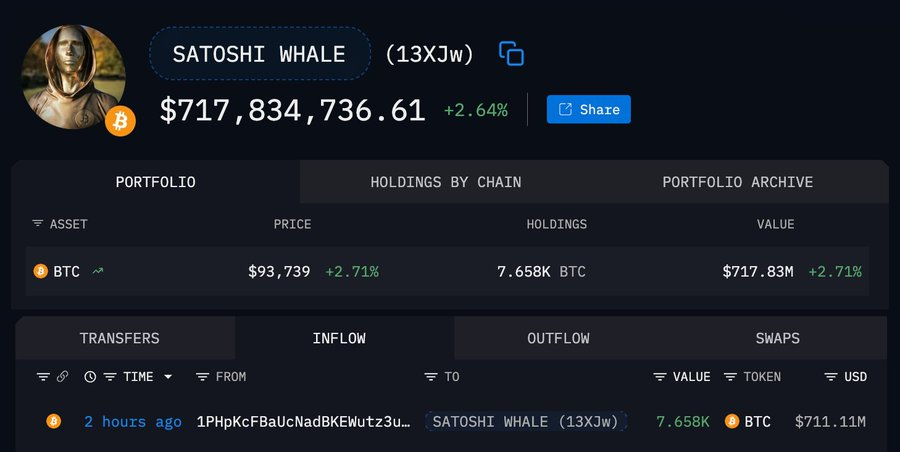 Perhaps most notably, a Satoshi-era whale purchased 7,658 BTC worth $710 million. This wallet became active for the first time since 2012, representing one of the oldest Bitcoin addresses to re-enter the market.