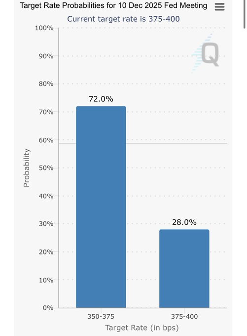 However, some market observers note potential bullish factors. CME FedWatch shows the probability of a December rate cut jumped from under 30% to over 70%.