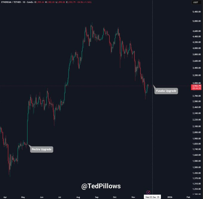 Ethereum pumped over 50% following the Pectra upgrade in May. The Fusaka upgrade could serve as a similar catalyst for price appreciation.