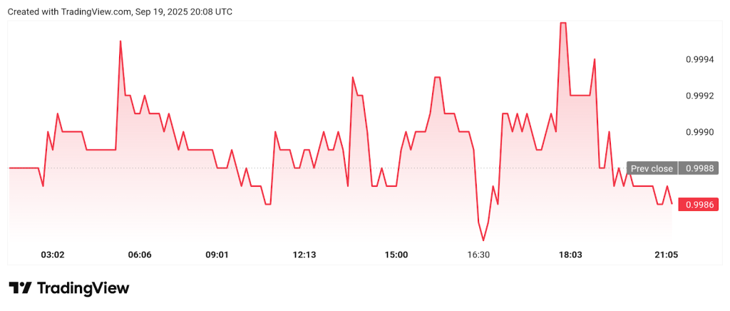 Meanwhile, PYUSD held firm near its $1 peg over the past 24 hours, trading between $0.9987 and $1.001, with a market capitalization of about $1.34 billion supported by steady liquidity.
