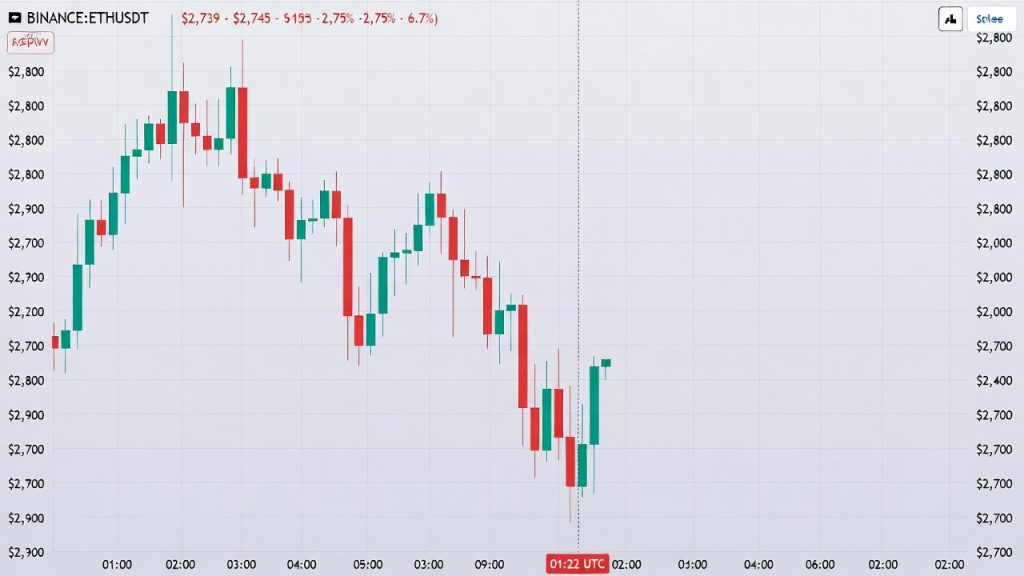 Binance data recorded ETH dipping below $2,800 around 01:22 UTC. The bulk of the decline accelerated through the morning trading session. ETH closed the day around $2,739 to $2,745, representing a decline of approximately 2.75% to 6.7%.
